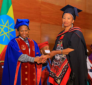 Among the 70 qualifications conferred during the 2019 Ethiopia graduation ceremony was an LLM degree in Human Rights, awarded to diplomatic spouse Mrs Dvumisile Senzosenkosi Hlophe-Sikhondze from the Kingdom of eSwatini.