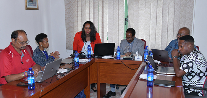Marothi Philip Lemekwane, Director: ICT Governance; Thokozani Dlamini, Director: ICT Infrastructure and Operations; Simret Mulugeta, Technology Enhance Learning and ICT Support, Unisa Ethiopia; Mathabo Nakene-Mginqi, Vice-Principal: ICT; Mothie Singh, Deputy Director: Desktop Support; Meseret Tefera, Deputy Director: Student Administration, Unisa Ethiopia and Dr Tsige Aberra, Regional Director, Unisa Ethiopia