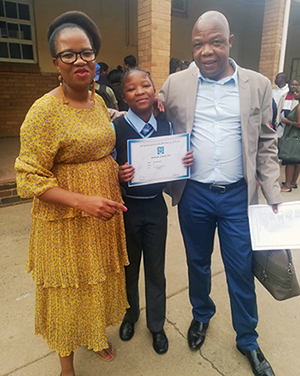 Ntebaleng and John Lekoana attending their 12-year-old daughter’s school award ceremony