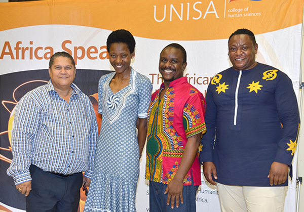 Prof Andrew Philips (Executive Dean: College of Human Sciences, Unisa), Prof Puleng Segalo (Head of Research and Graduate Studies, Unisa), Prof Nyasha Mboti (Head of Communication Studies, University of Johannesburg), and Prof Kgomotso Masemola (Department of English Studies, Unisa)