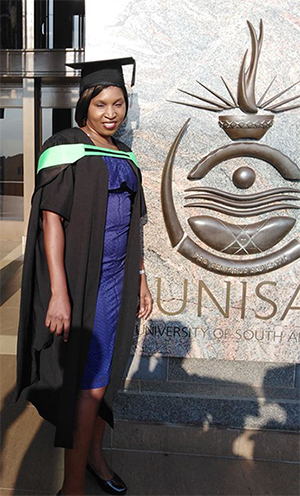 When Nkomo eventually learned about Unisa, she still did not qualify for a degree. "I applied at Unisa in 2014 for the 2015 academic year for a Higher Certificate in Accounting Sciences and a Higher Certificate in Economic and Management Sciences, which I passed with six distinctions (cum laude)," explained a joyful Nkomo.