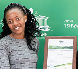 Unisa student Pertunia Ndou's waste management innovation was awarded third prize in the waste management category at the Tshwane Inter-University Innovation Challenge in November 2020.
