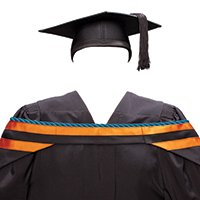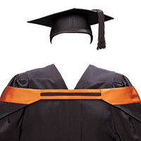 ![]() Hons BA (SS) (LAW) Black, edged with 60mm golden brown ribbon bordered with a marine blue and a white cord |